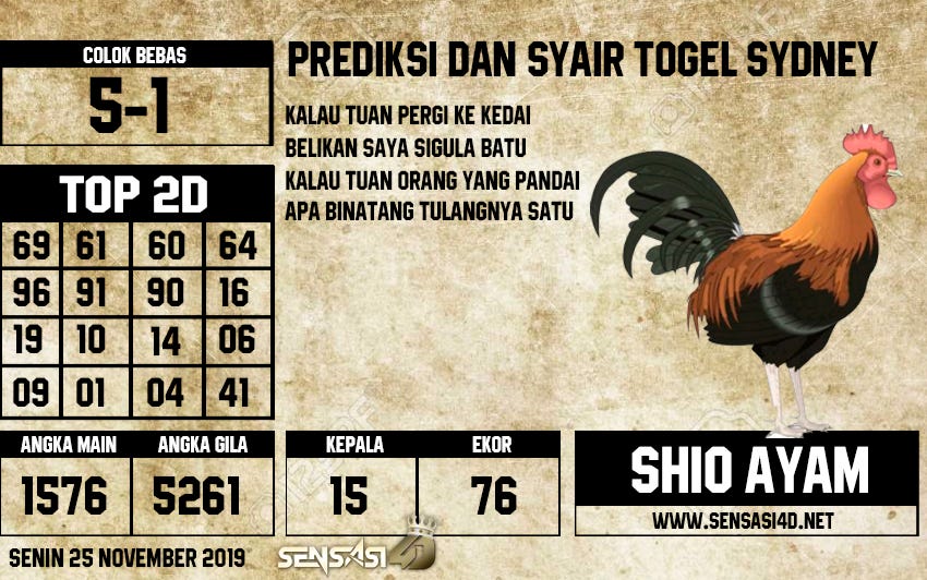 Prediksi Angka TOGEL SYD Kamis 25 April 2019 VisiTogel Hk Prediksi