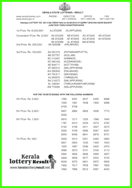 LIVE Kerala Lottery Result 25 09 2019 Akshaya AK 413 Lottery Result